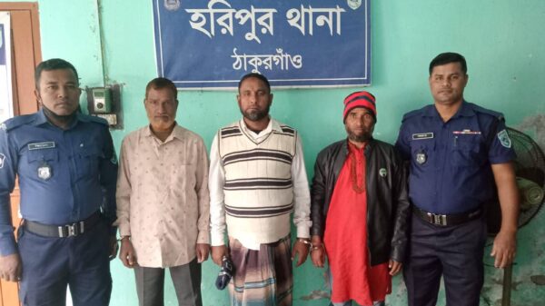 সোহরাব হোসেন; ঠাকুরগাঁও প্রতিনিধি ঠাকুরগাঁও জেলার হরিপুর উপজেলায় রাজনৈতিক মামলার অভিযোগে তিনজনকে গ্রেফতার করেছে পুলিশ। গ্রেফতারকৃতদের মধ্যে হরিপুরের ২নং আমগাঁও ইউনিয়নের বেলুয়া গ্রামের দুজন এবং ৬নং ভাতুরিয়া ইউনিয়নের একজন রয়েছেন।