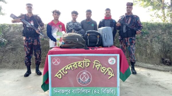 সোহরাব হোসেন; ঠাকুরগাঁও প্রতিনিধি ঠাকুরগাঁওয়ের পীরগঞ্জ সীমান্তে ভারত থেকে অবৈধ পথে দেশে প্রবেশের সময় চার বাংলাদেশিকে আটক করেছে বর্ডার গার্ড বাংলাদেশ (বিজিবি)। রোববার বিকেলে বৈরচুনা ইউনিয়নের জঙ্গলবাড়ী চান্দেরহাট বিওপি সংলগ্ন